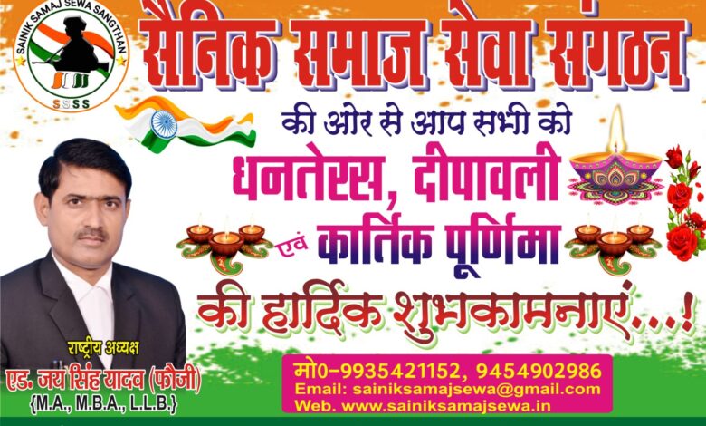सैनिक समाज सेवा संगठन के राष्ट्रीय अध्यक्ष एडवोकेट जय सिंह यादव फौजी की तरफ से